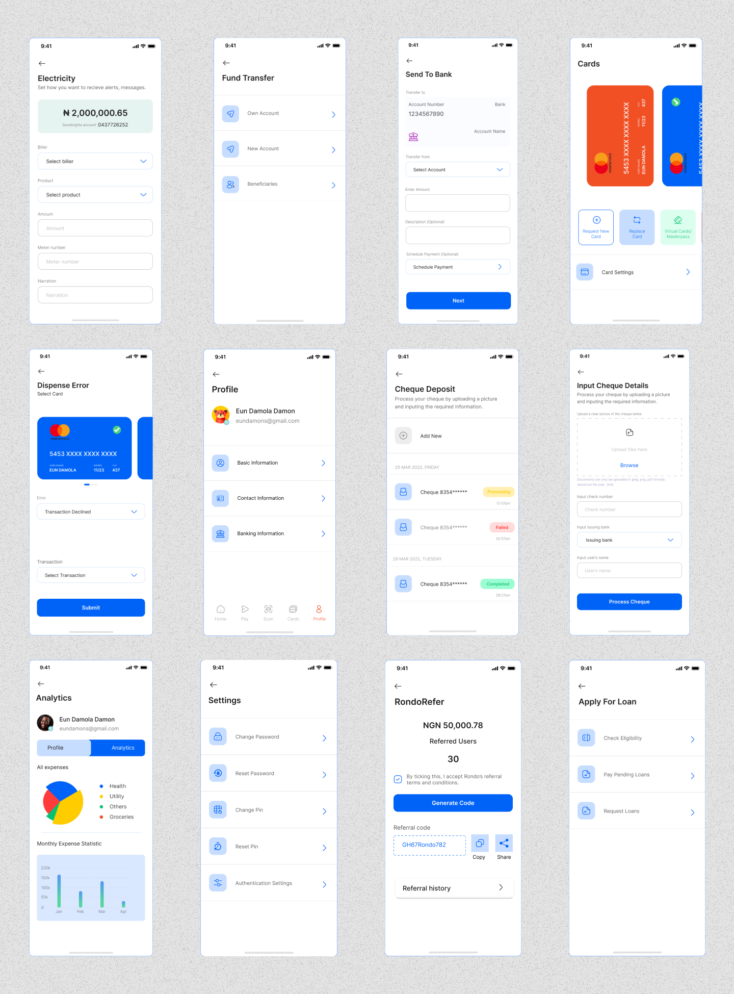 Rondo is a mobile banking application whose main aim is to build an efficient solution to the user’s banking experience whereby users can pay bills, deposit cheques, apply for loans amidst others..